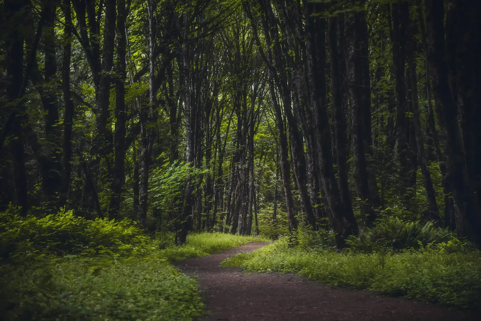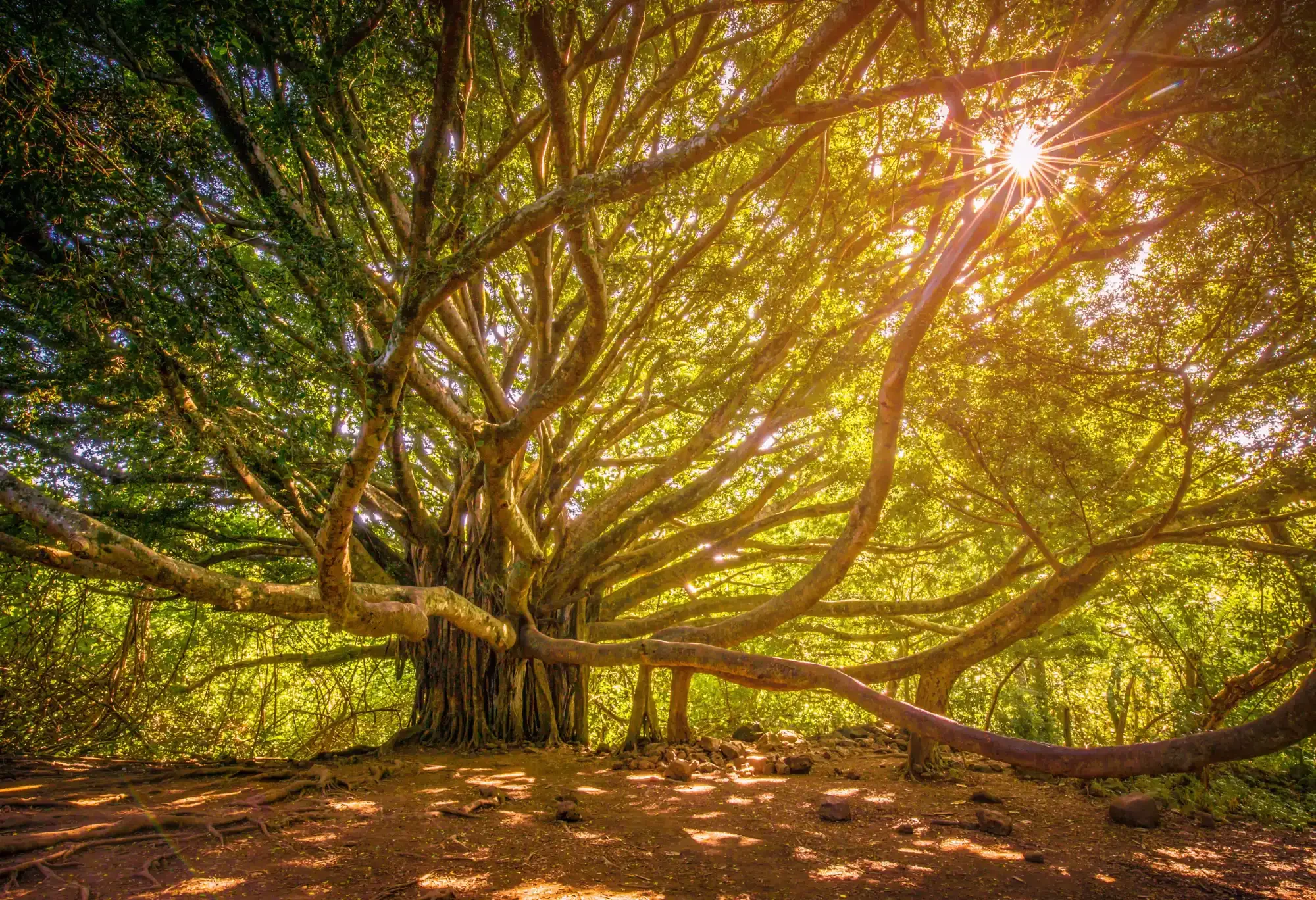 Sunlight shining through a canopy of trees